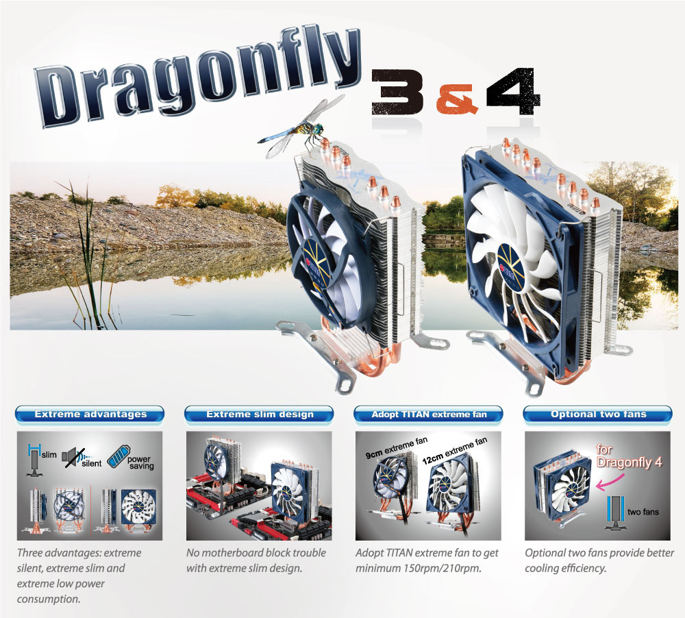 - مبرد معالجات الكمبيوتر بثلاثة أنابيب حرارية من نوع Dragonfly.
