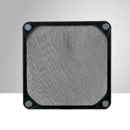 - Vista frontal del filtro de metal de ventilador de 120 mm con imán incorporado.