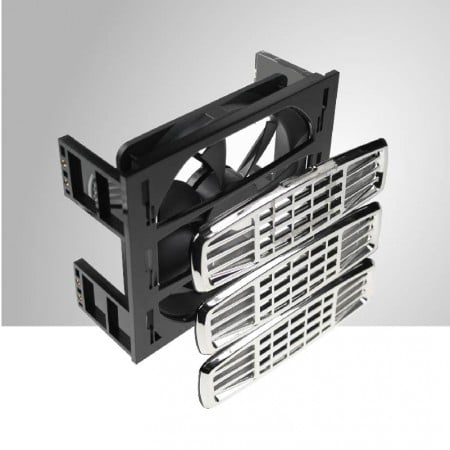 DétailsKit de refroidissement pour montage de disque dur 12V DC 5.25" avec ventilateur de refroidissement 3x 40 mm.