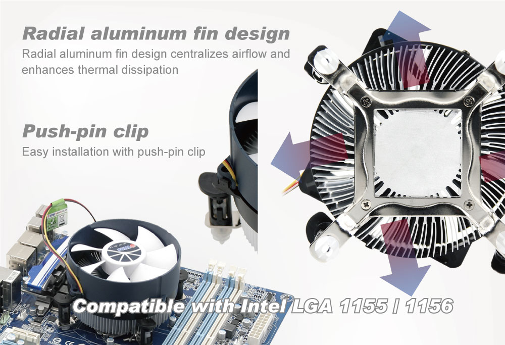 세부인텔 LGA 1155/1156/1200용 - 알루미늄 냉각 핀이 장착된 로우 프로파일 디자인 CPU 에어 쿨러 / TDP 95W