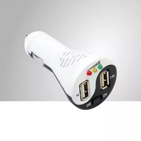 - Adjust tester switch depending on car output voltage. General speaking, 12V for normal cars and 24V for trucks etc. Then plug in cigarette adapter position with Taichi 2in1 USB charger.