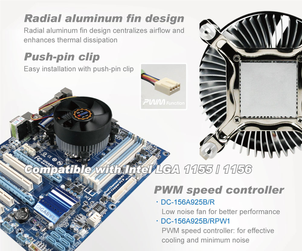 DC-156C925B/RPW1, Intel LGA 1155 / 1156 / 1150/ 1200 platform için tasarlanmış bir CPU soğutucusudur....