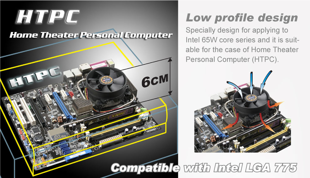 - Düşük profil tasarımı - HTPC kasa için ideal - Sadece 53mm yükseklik, ev sineması PC kasa gibi düşük profil kasa için uygundur (HTPC kasa)